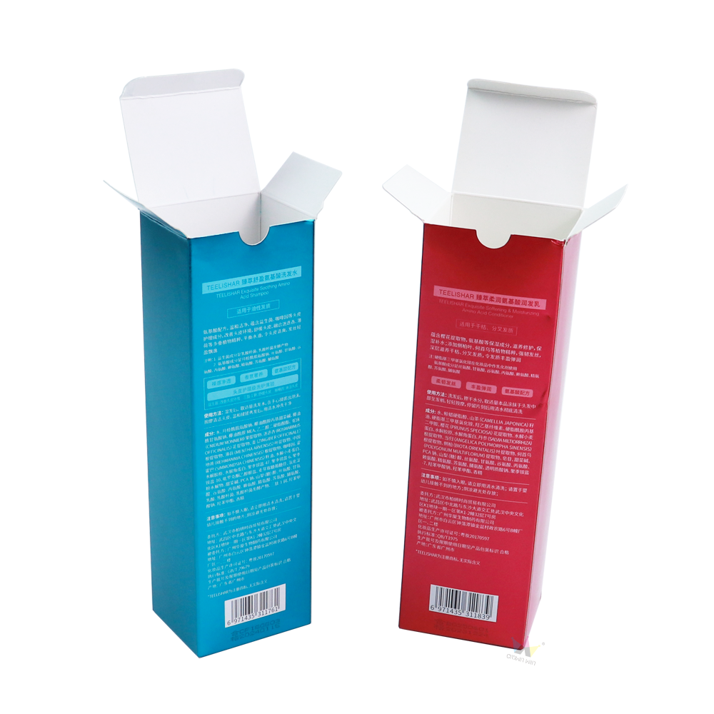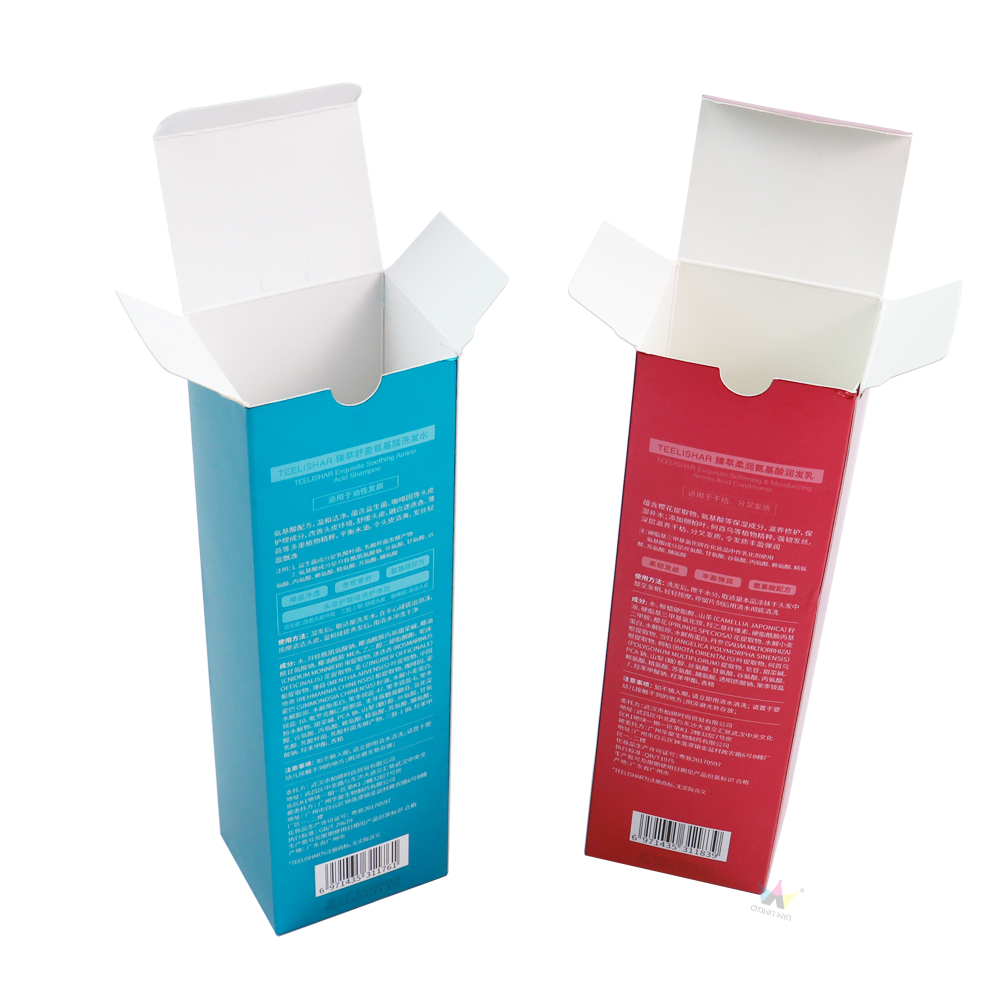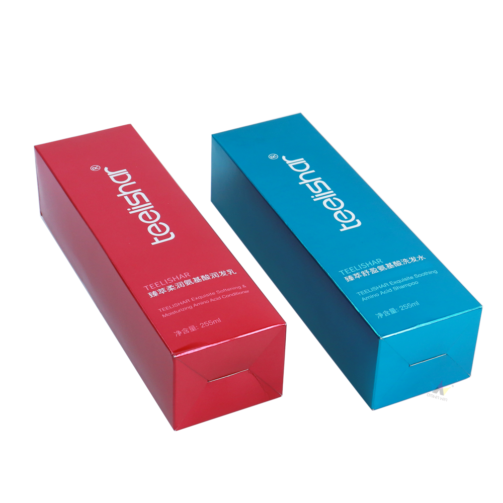 Crown Win's advanced metal coated foldable hair care product packaging box (UV printed, custom lining) can protect amino acid shampoo and conditioner. Customizable, it is the ideal choice for personal care B2B packaging.