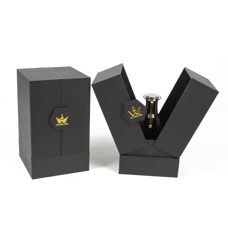 Bespoke Double-Door Perfume Packaging Box with Gold Foil Logo | Crown Win Manufacturer