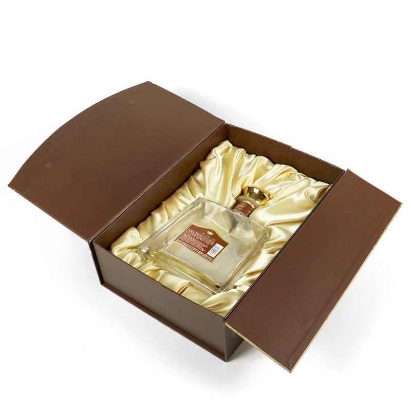 With its unique double-door opening, gold foil accents, and plush satin interior, this packaging box offers the perfect balance of premium protection and an upscale presentation, making it the ideal choice for luxury wine brands.