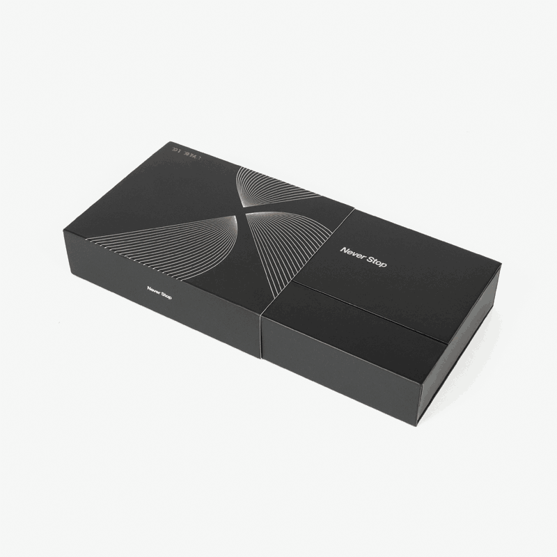 What makes this packaging box stand out is the holographic logo printing. The holographic effect adds a dynamic, eye-catching quality that makes the logo shift and change in the light, providing a futuristic, premium look that draws attention. This feature enhances the overall branding of your product, making it ideal for tech and audio brands looking to make a lasting impression.
