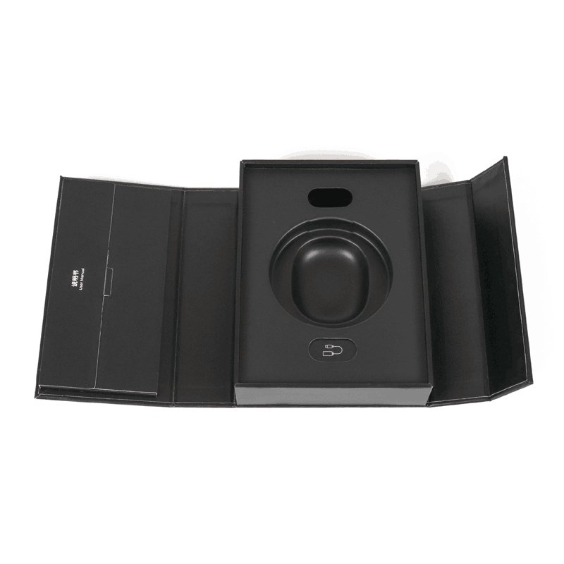 This double-door design packaging box is specifically created to showcase and protect Bluetooth earphones, offering a sophisticated solution for high-end product presentation. The sturdy, premium construction ensures that your earphones remain secure and well-protected during shipping and display. The double-door opening adds a touch of elegance and ease, providing customers with a seamless unboxing experience.