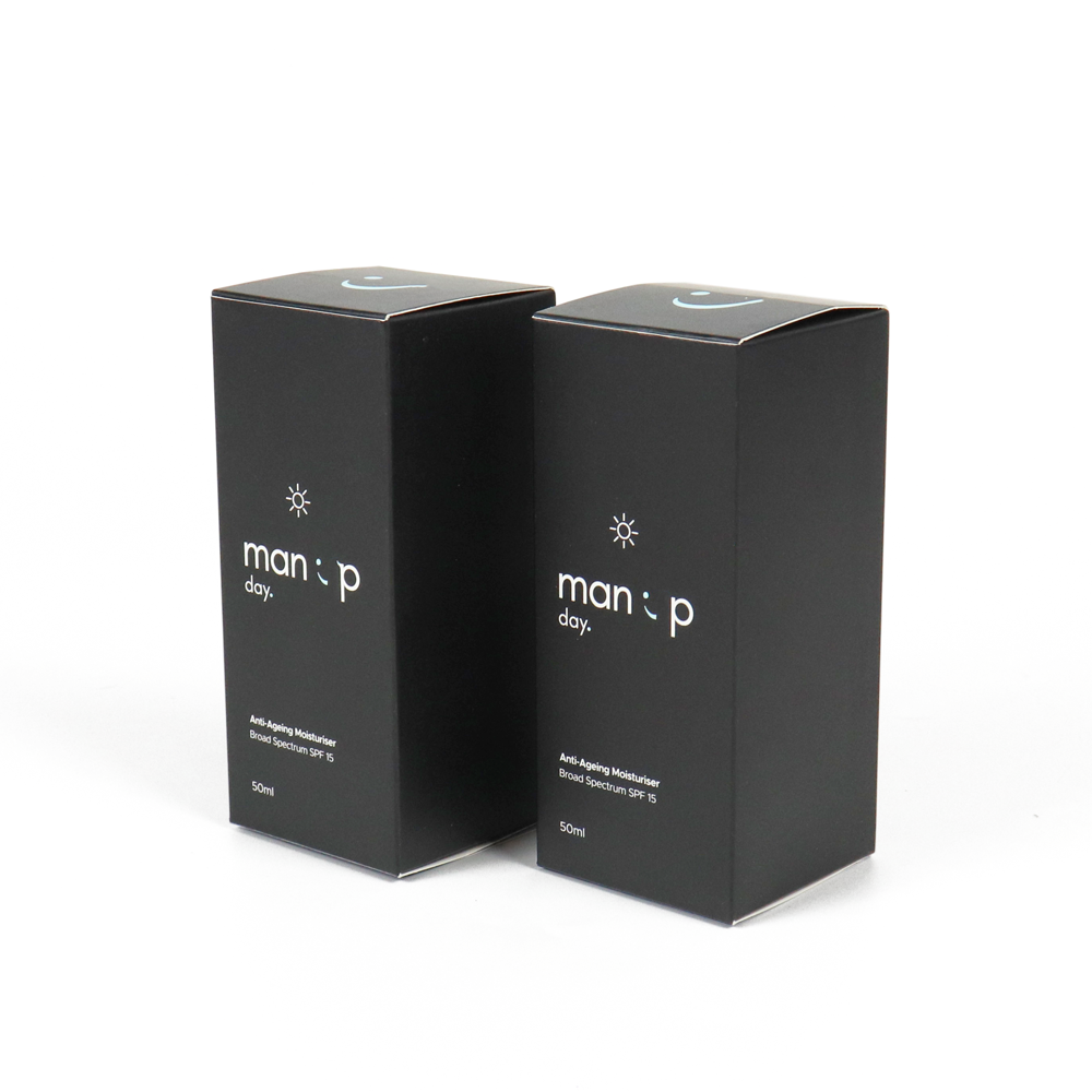 Crown Win Manufacturer Premium Matte Black Cardboard Foldable Skincare Packaging Box - UV Printed Customizable Men's Anti Aging Products