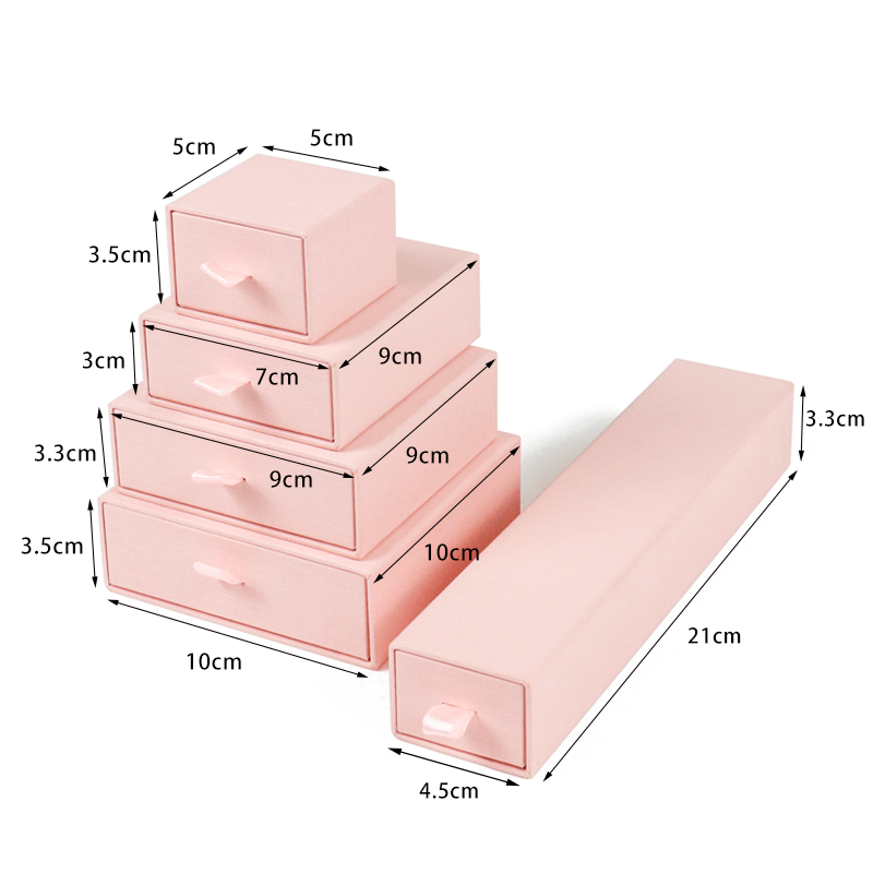 The user-friendly drawer design makes accessing and storing jewelry a breeze. The smooth-sliding drawer provides convenient storage space, keeping your jewelry organized and easy to find. Its compact and sleek structure is ideal for displaying in retail stores, boutique counters, or using as a personal jewelry organizer at home. Additionally, the minimalist and versatile design allows for easy customization—you can add your brand logo, patterns, or personalized messages to create a unique packaging that aligns with your brand image.