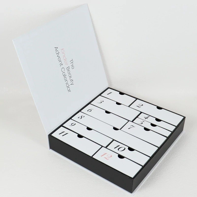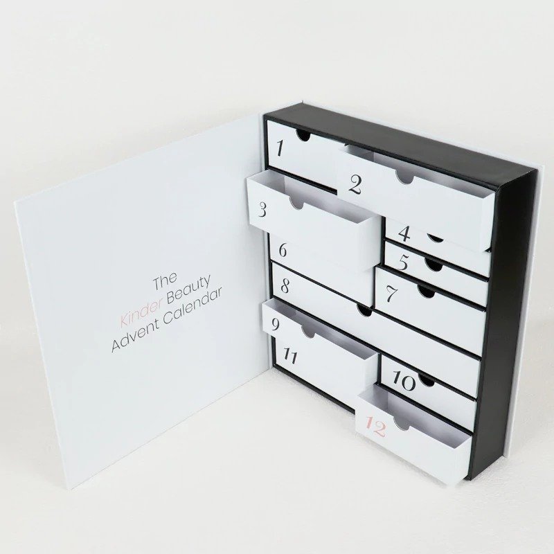This luxury design calendar box is created for skincare and beauty brands seeking a high-impact seasonal packaging solution. The multiple compartments allow individual products to be presented day by day, enhancing customer engagement and b