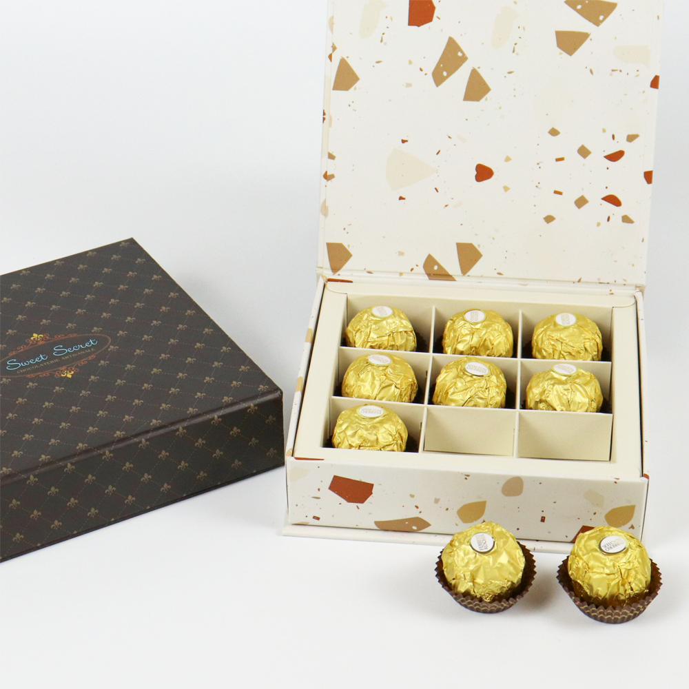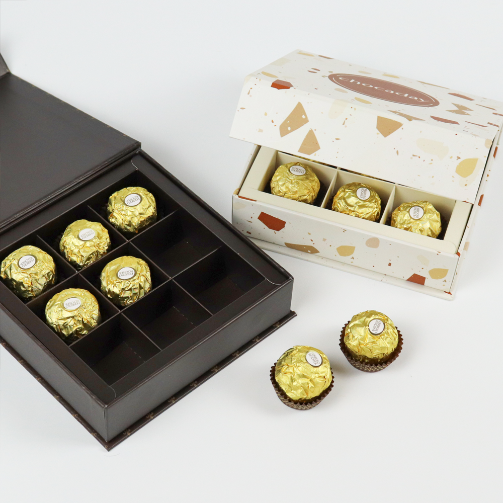 Crown Win Box's custom partitioned gift box adds a touch of sophistication to your chocolate gifts. Magnetic sealing, precision lining, and brand printing create a high-end candy packaging solution.