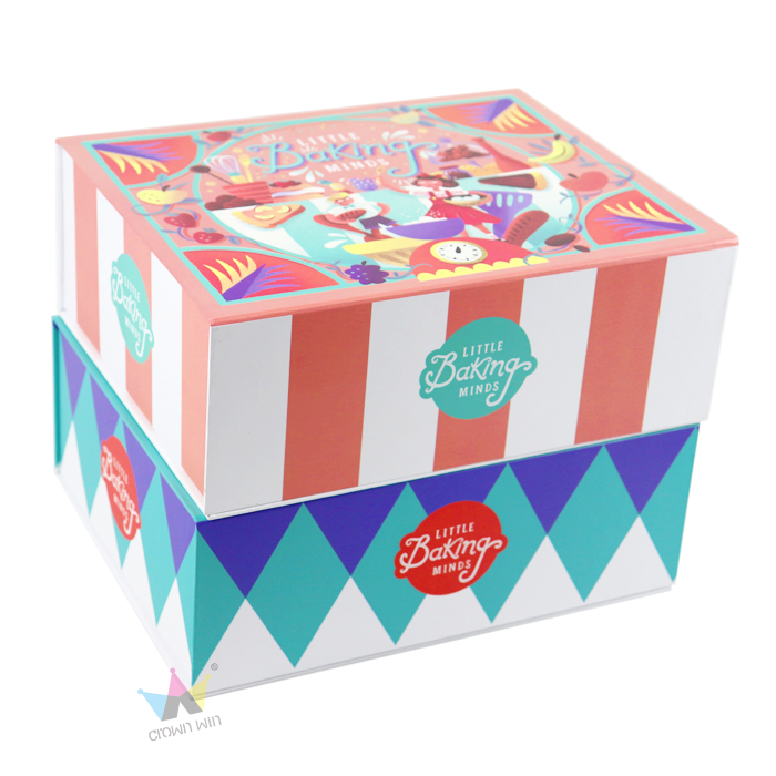 Crown Win Box manufacturer's custom printed baking gift box turns your child's home baking set into a delightful gift. These gift boxes perfectly blend fun aesthetics with practical functions, making them an ideal choice for packaging baking ingredients, tools, and activity guides, inspiring young bakers.