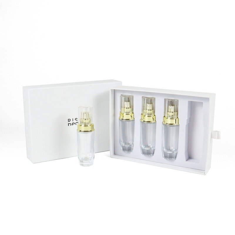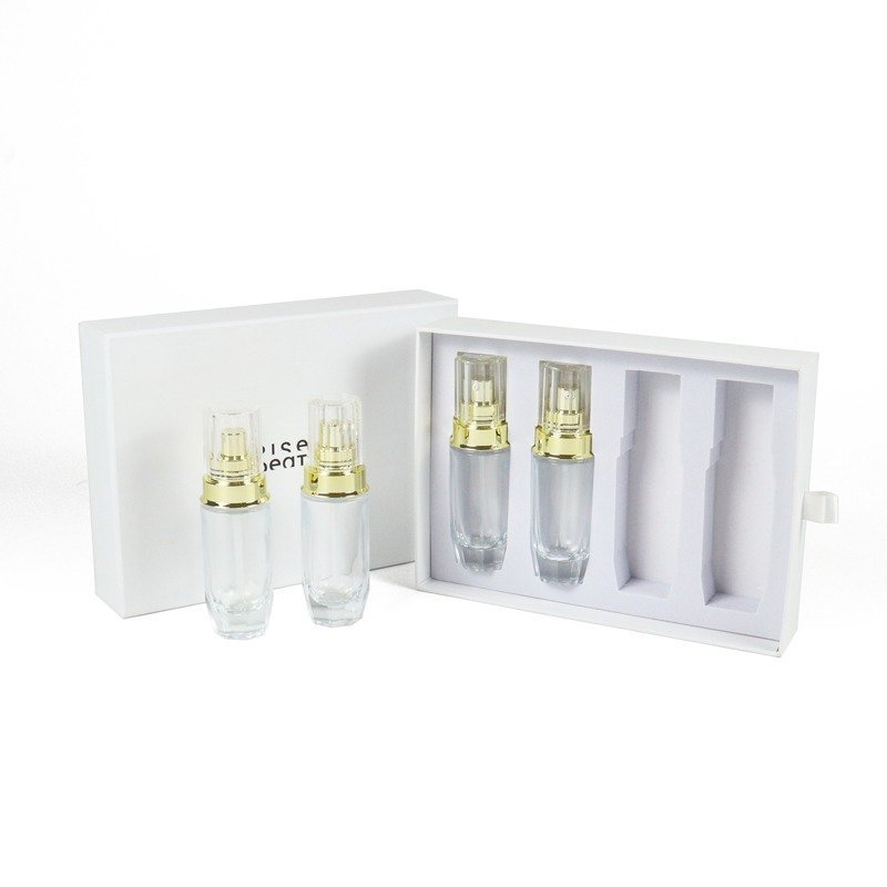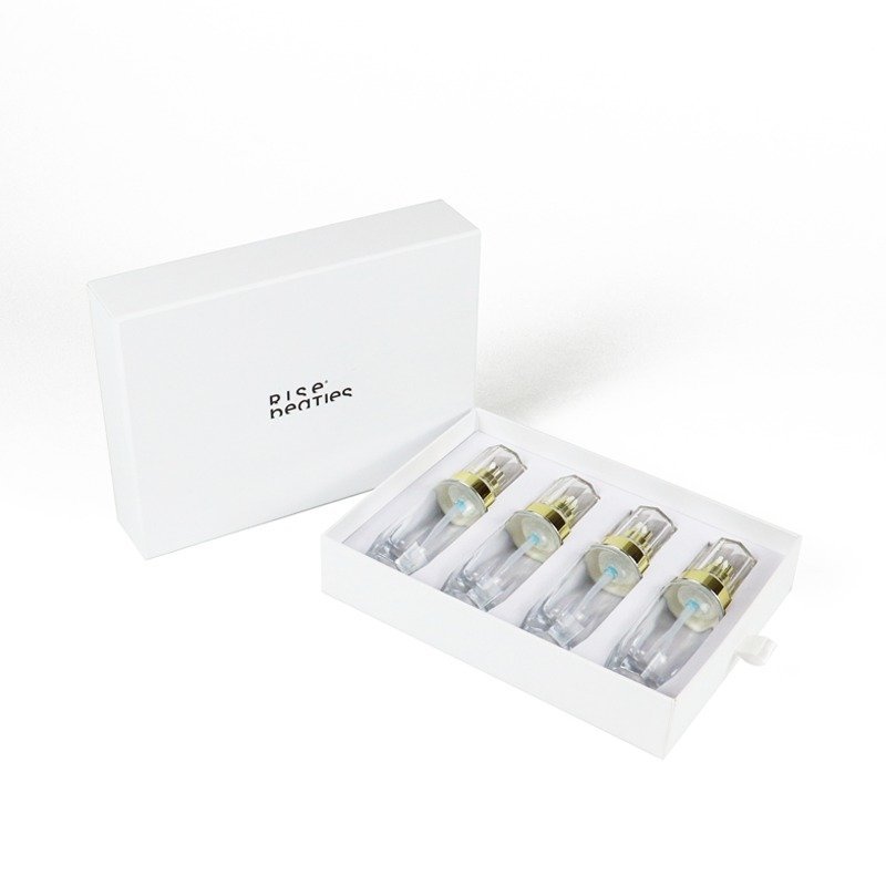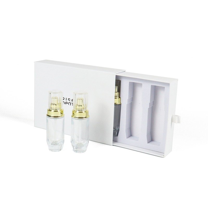 The technical parameters support flexible customization: the conventional benchmark size is 20*10*6cm (length, width and height), the inner support can be opened to fit different bottle types (such as essence bottles and water emulsion bottles) as required, the outer box can be printed with brand logos and exclusive patterns, and the push-pull design is convenient for opening and closing (improving the end user experience), to solve the procurement difficulties of "the packaging does not match the product bottle type, and there is no brand exclusive visual logo".