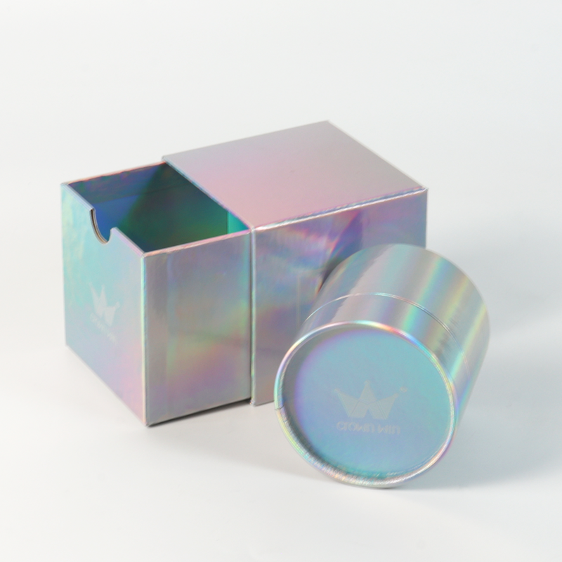 This advanced holographic iridescent drawer style gift box set is an ideal choice for candles, cosmetics, and high-end gifts. Crown Win Packaging Box Manufacturer provides customized packaging services.