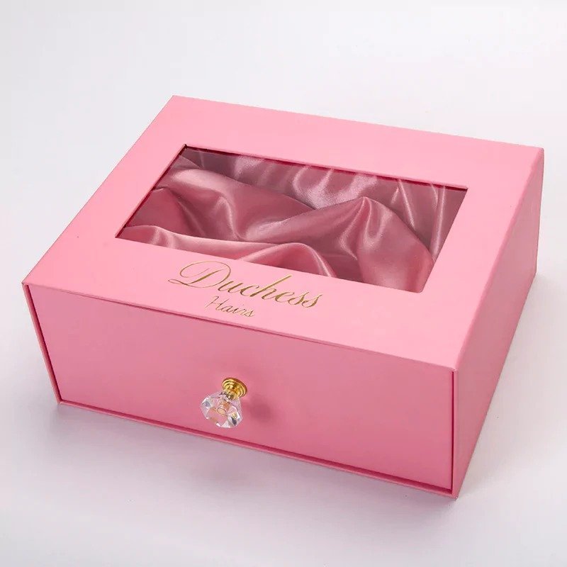 Hot Stamping Logo Wig Paper Packaging Box Custom Women's Hair Drawer Packaging Box with Clear Window | Crown Win Manufacturer
