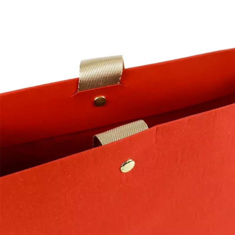 Add a touch of luxury to your brand with our premium red paper gift bag, featuring an eye-catching gold foil printed logo. Perfect for upscale retailers, high-end events, and luxury gift packaging, this gift bag offers a sophisticated and elegant solution for presenting your products. The rich red color combined with the gleaming gold foil logo creates a visually striking effect that exudes elegance and refinement. Ideal for fashion items, jewelry, cosmetics, or gourmet gifts, this gift bag enhances the unboxing experience and elevates your brand’s image.