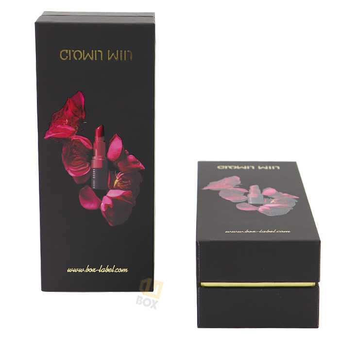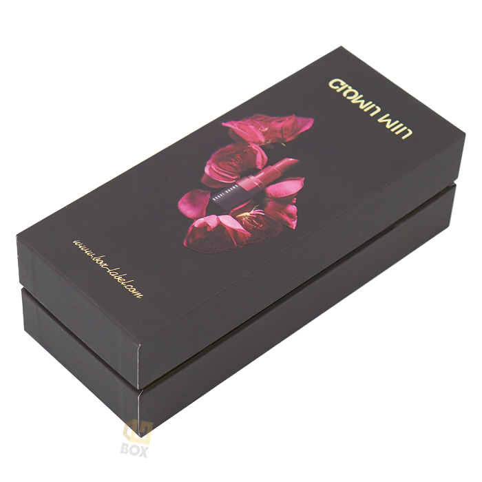 Premium matte black cardboard hot stamping - two-piece lipstick packaging box | Customized by Crown Win manufacturer