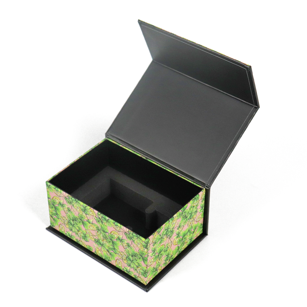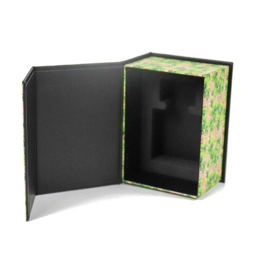 This printed cardboard magnetic suction perfume packaging box is made of high hard printed cardboard and is refined by bronzing process. The box is equipped with customized EVA foam lining (closely fitting the perfume bottle to prevent scratching and damage) and magnetic suction sealing, effectively solving the problem of bottle damage during transportation.
