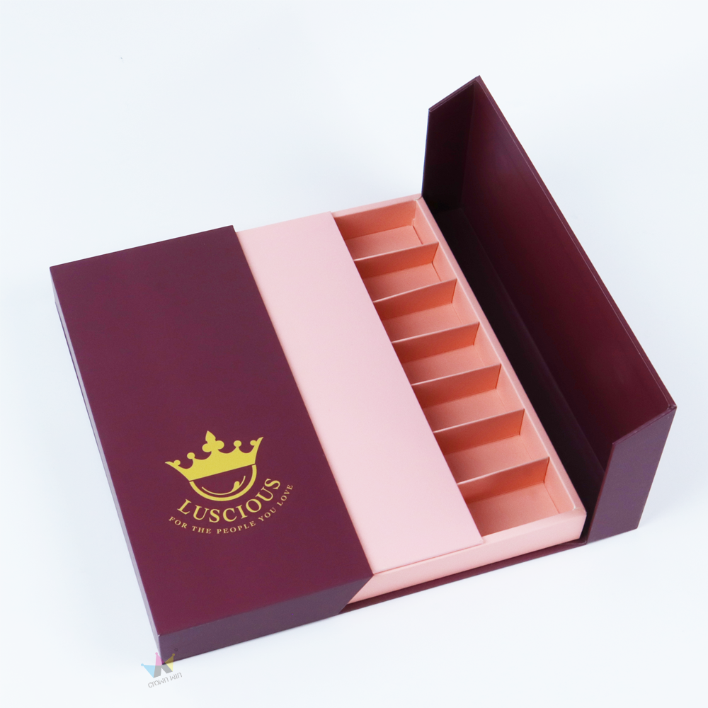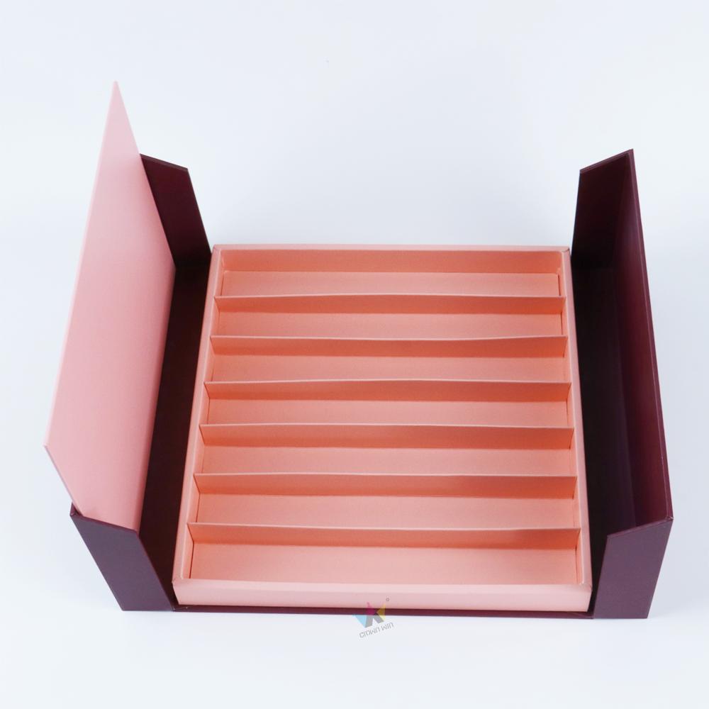 Premium wine red cardboard hot stamping double split box | Customized by Crown Win manufacturer