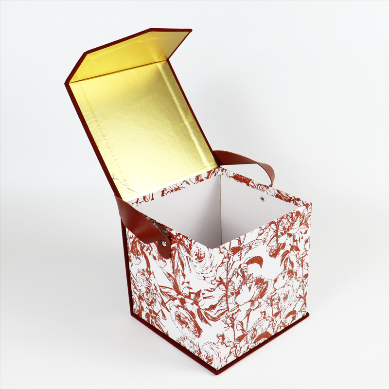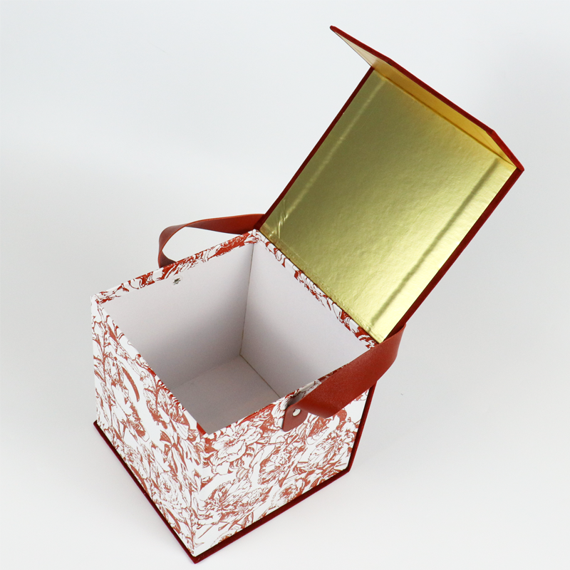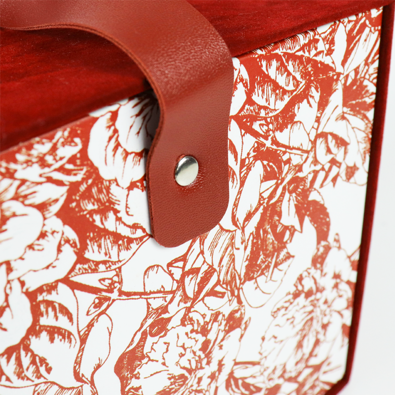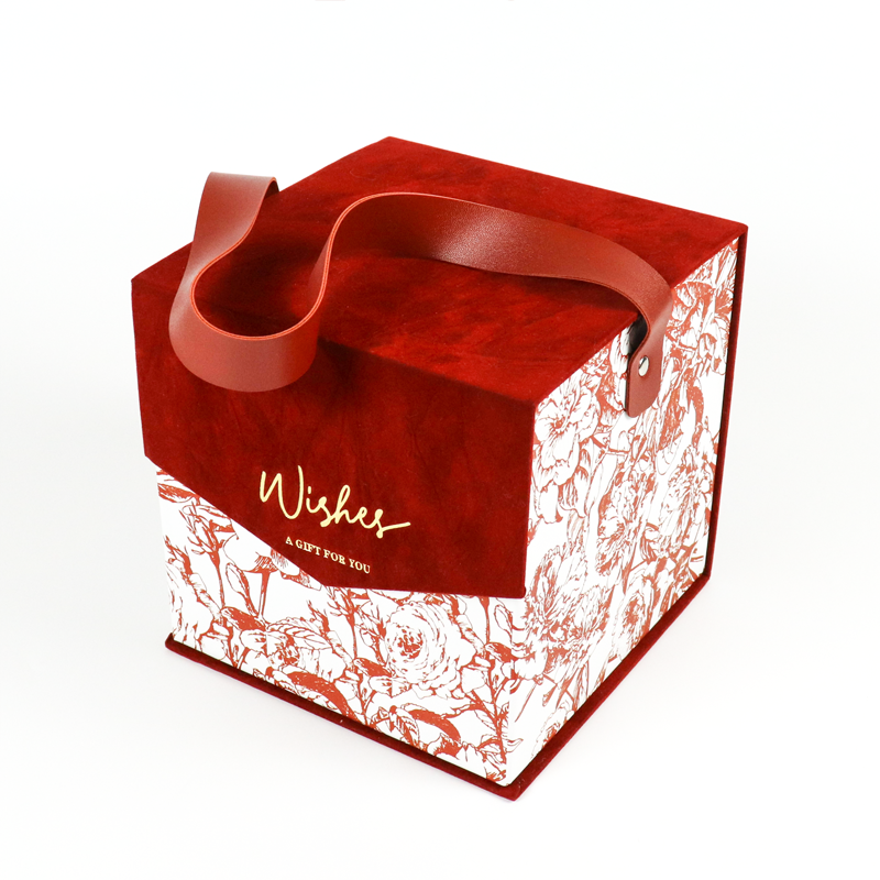 Crown Win's red velvet square handle gift box (hot stamping process, floral print) can protect the gift. Customizable, it is the ideal choice for B2B gift packaging for festivals and flowers.