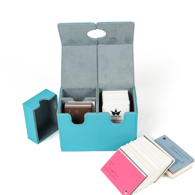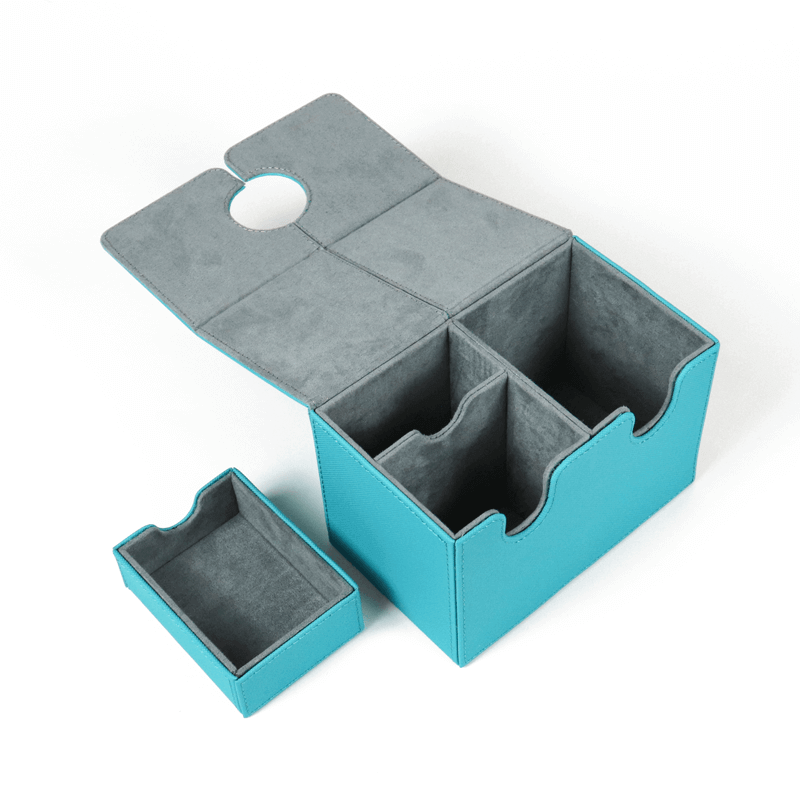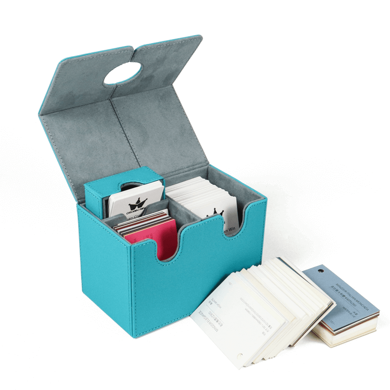 This high-quality custom leather and velvet magnetic game card packaging box offers a sophisticated and durable solution for presenting your game cards in style. Crafted from premium leather and lined with plush velvet, the box provides both a luxurious feel and superior protection, ensuring your cards stay safe while making a lasting impression.